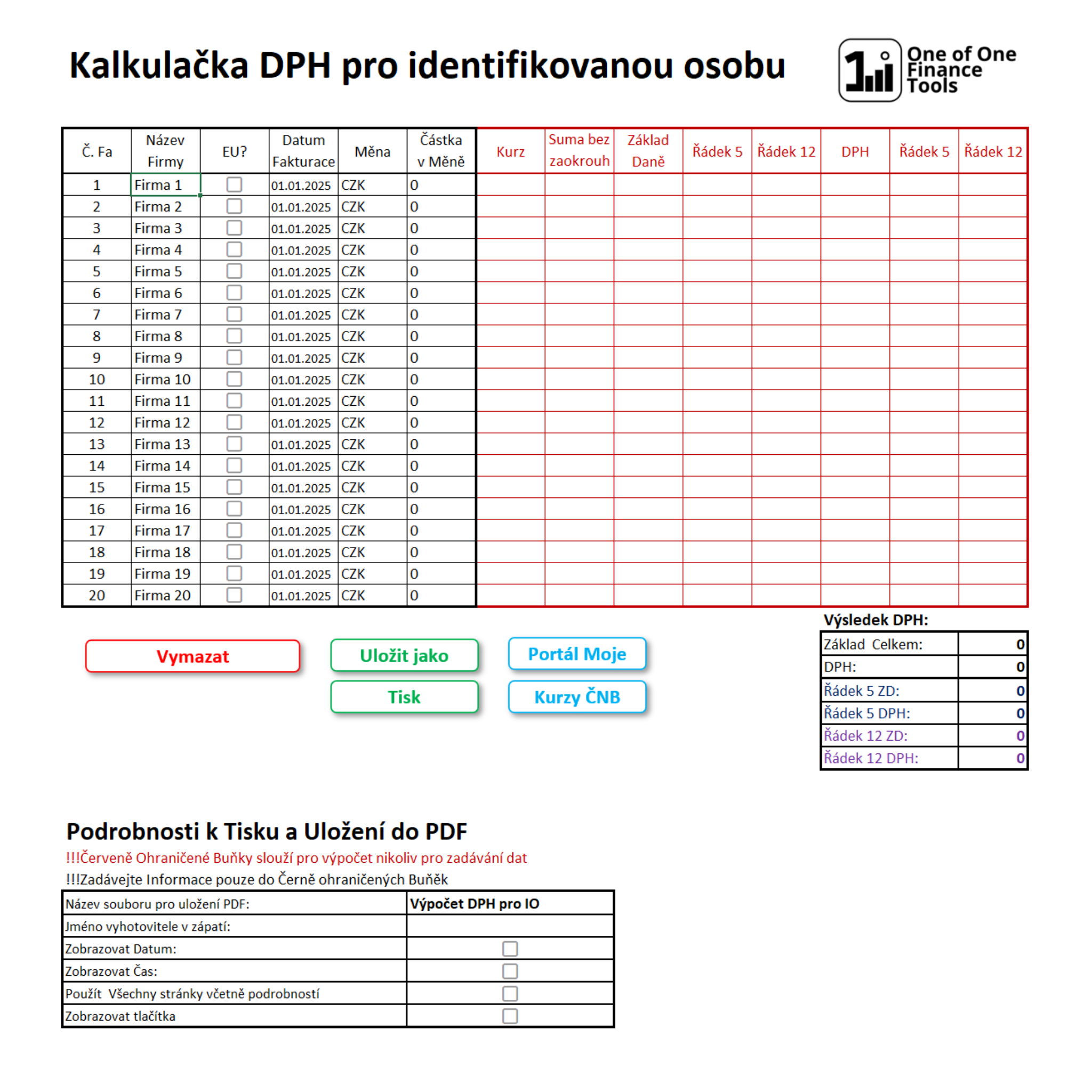 - PDF slouží jako přehled a archivace výpočtů,